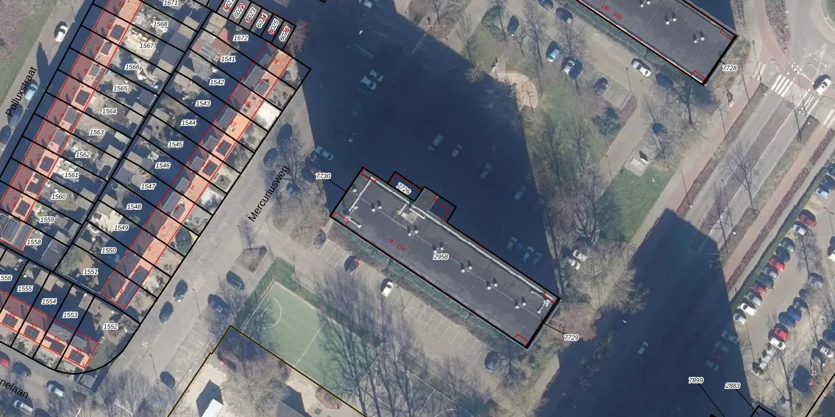 Het perceel waarop Mercuriusweg 134 staat heeft een oppervlakte van 841 m². Dit is een groot perceel. De perceeloppervlakte wordt geregistreerd door het Kadaster. Gedetailleerde informatie over de maten van dit perceel kunt u vinden in het rapport Kadastrale kaart met maatvoering van Mercuriusweg 134.