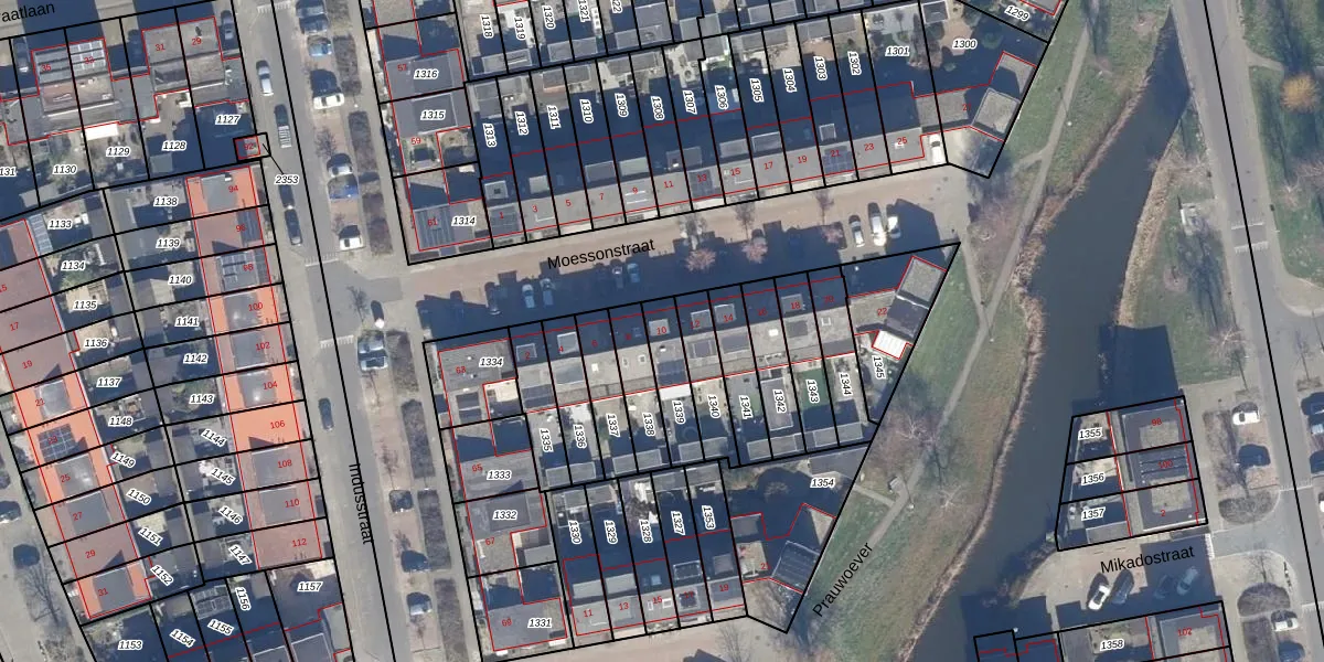 Het perceel waarop Moessonstraat 10 staat heeft een oppervlakte van 130 m². Dit is een middelgroot perceel. De perceeloppervlakte wordt geregistreerd door het Kadaster. Gedetailleerde informatie over de maten van dit perceel kunt u vinden in het rapport Kadastrale kaart met maatvoering van Moessonstraat 10.