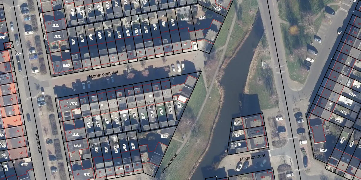 Gebruik de zoekbalk of klik op een perceel voor informatie over de adressen binnen dit perceel.