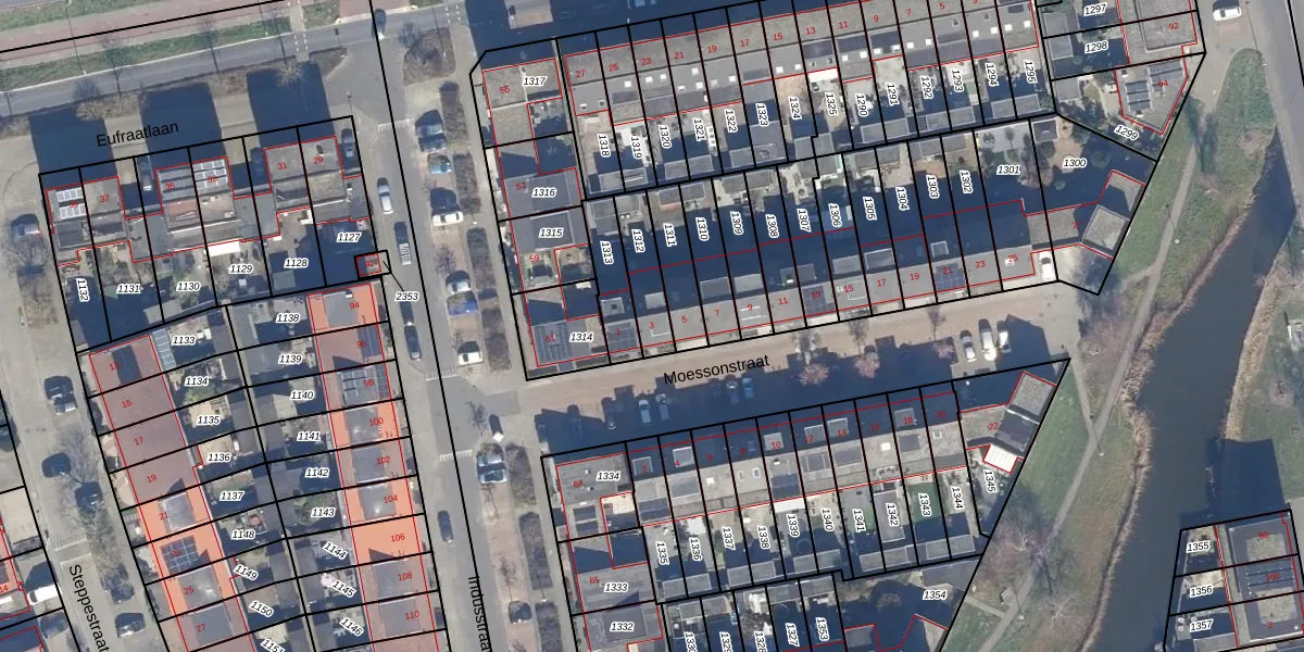 Het perceel waarop Moessonstraat 3 staat heeft een oppervlakte van 130 m². Dit is een middelgroot perceel. De perceeloppervlakte wordt geregistreerd door het Kadaster. Gedetailleerde informatie over de maten van dit perceel kunt u vinden in het rapport Kadastrale kaart met maatvoering van Moessonstraat 3.
