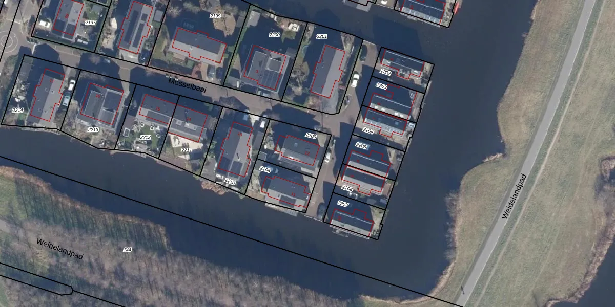 Mosselbaai 12 is gelegen op kadastraal perceel PMR00O2209. Deze kadastrale aanduiding is uniek en wordt gebruikt door het Kadaster om eigendomsrechten en andere zakelijke rechten vast te leggen. Het perceel maakt onderdeel uit van de kadastrale gemeente Purmerend.