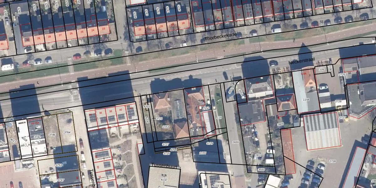 Het perceel waarop Neckerstraat 39 staat heeft een oppervlakte van 341 m². Dit is een groot perceel. De perceeloppervlakte wordt geregistreerd door het Kadaster. Gedetailleerde informatie over de maten van dit perceel kunt u vinden in het rapport Kadastrale kaart met maatvoering van Neckerstraat 39.