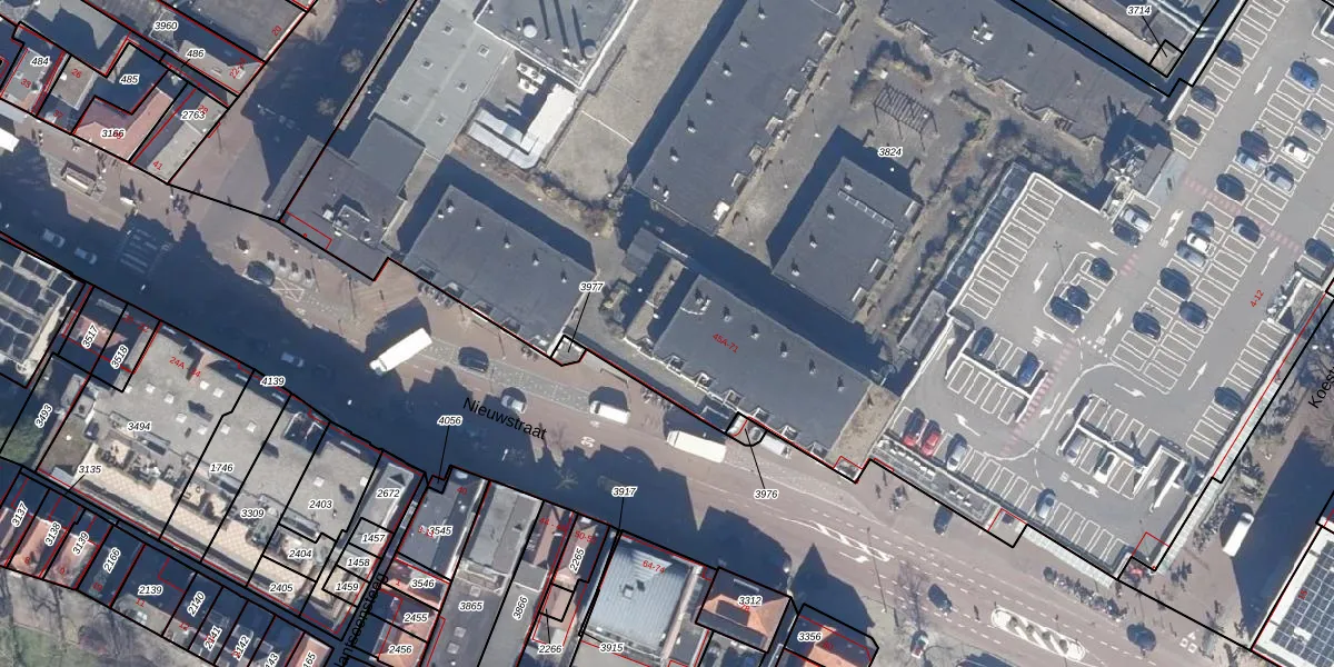 Het perceel waarop Nieuwstraat 53-D staat heeft een oppervlakte van 1,2 ha. Dit is een zeer groot perceel. De perceeloppervlakte wordt geregistreerd door het Kadaster. Gedetailleerde informatie over de maten van dit perceel kunt u vinden in het rapport Kadastrale kaart met maatvoering van Nieuwstraat 53-D.