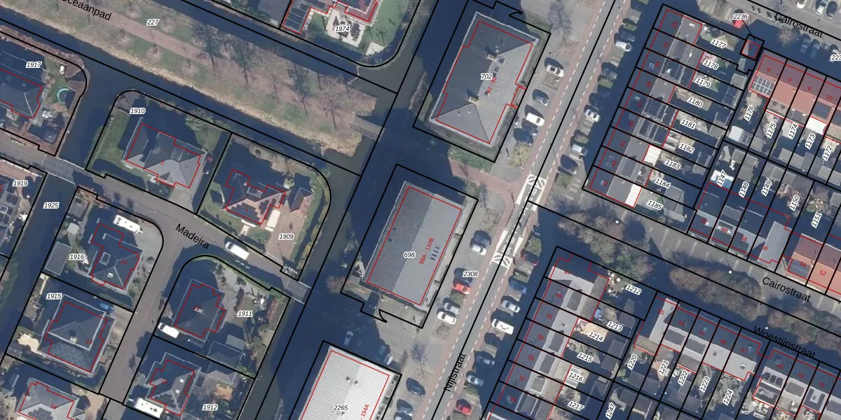 Het perceel waarop Nijlstraat 106-B staat heeft een oppervlakte van 717 m². Dit is een groot perceel. De perceeloppervlakte wordt geregistreerd door het Kadaster. Gedetailleerde informatie over de maten van dit perceel kunt u vinden in het rapport Kadastrale kaart met maatvoering van Nijlstraat 106-B.