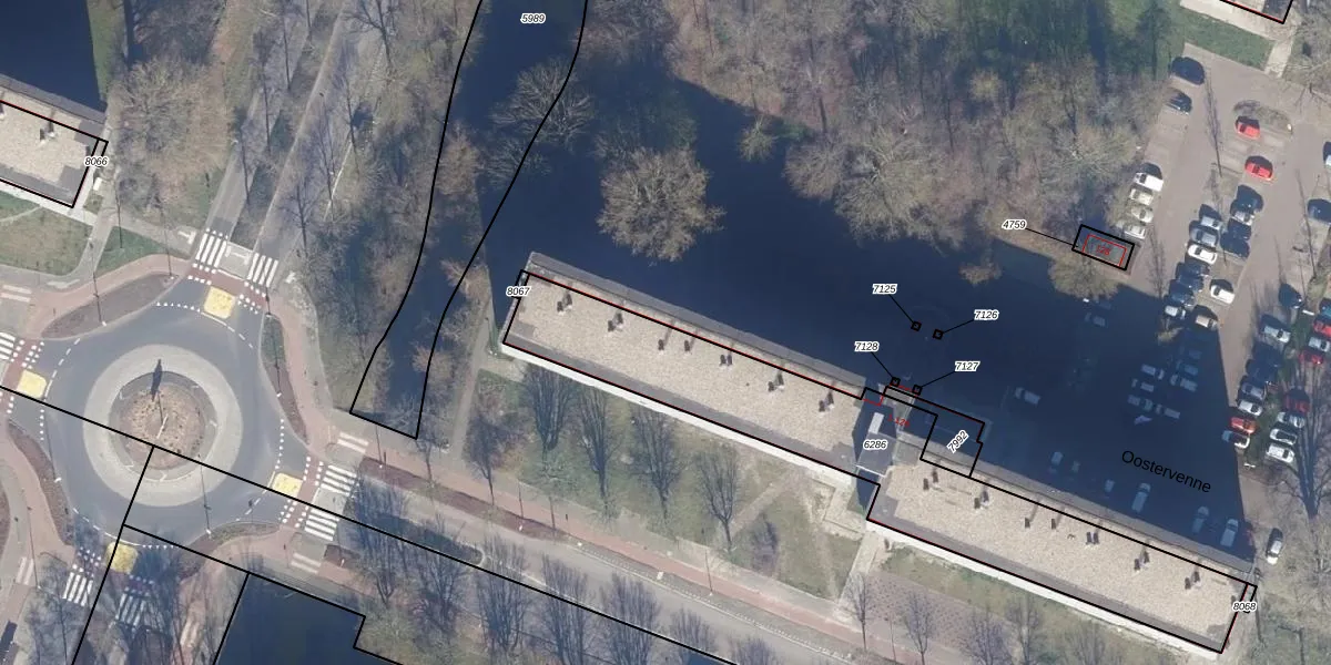 Het perceel waarop Oostervenne 103 staat heeft een oppervlakte van 1355 m². Dit is een zeer groot perceel. De perceeloppervlakte wordt geregistreerd door het Kadaster. Gedetailleerde informatie over de maten van dit perceel kunt u vinden in het rapport Kadastrale kaart met maatvoering van Oostervenne 103.