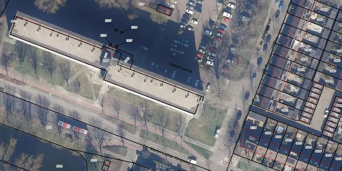 Het perceel waarop Oostervenne 21 staat heeft een oppervlakte van 1355 m². Dit is een zeer groot perceel. De perceeloppervlakte wordt geregistreerd door het Kadaster. Gedetailleerde informatie over de maten van dit perceel kunt u vinden in het rapport Kadastrale kaart met maatvoering van Oostervenne 21.