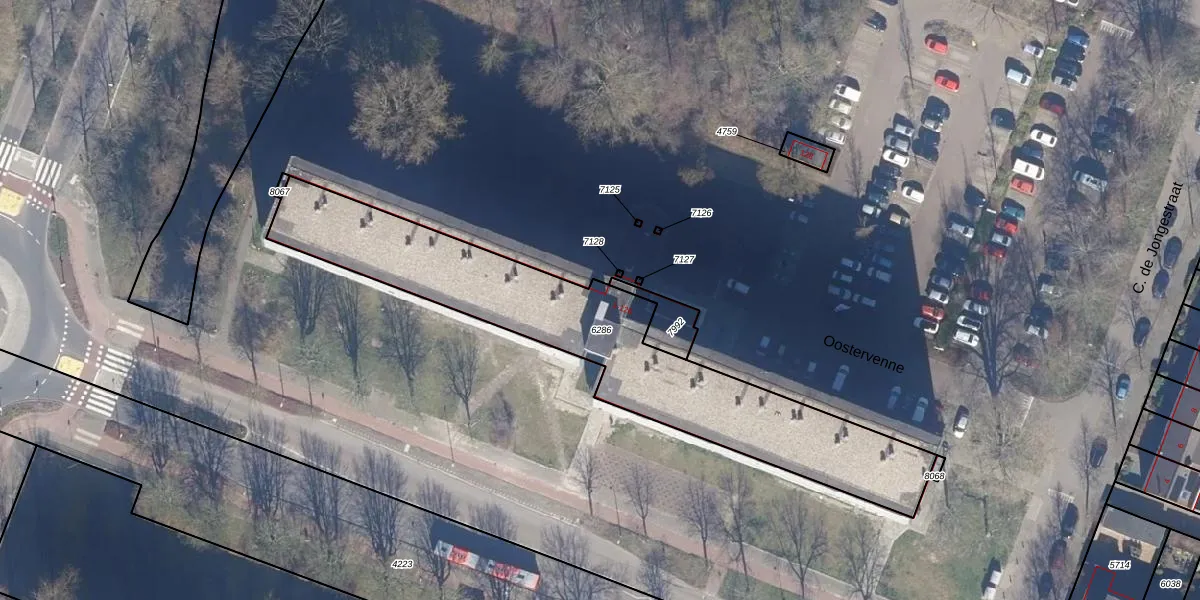Het perceel waarop Oostervenne 67 staat heeft een oppervlakte van 1355 m². Dit is een zeer groot perceel. De perceeloppervlakte wordt geregistreerd door het Kadaster. Gedetailleerde informatie over de maten van dit perceel kunt u vinden in het rapport Kadastrale kaart met maatvoering van Oostervenne 67.