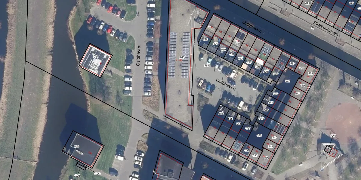Het perceel waarop Oslohaven 28 staat heeft een oppervlakte van 1145 m². Dit is een zeer groot perceel. De perceeloppervlakte wordt geregistreerd door het Kadaster. Gedetailleerde informatie over de maten van dit perceel kunt u vinden in het rapport Kadastrale kaart met maatvoering van Oslohaven 28.