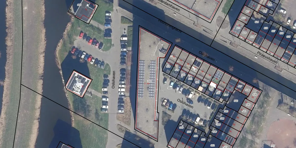 Het perceel waarop Oslohaven 32 staat heeft een oppervlakte van 1145 m². Dit is een zeer groot perceel. De perceeloppervlakte wordt geregistreerd door het Kadaster. Gedetailleerde informatie over de maten van dit perceel kunt u vinden in het rapport Kadastrale kaart met maatvoering van Oslohaven 32.