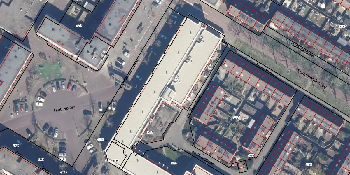 Het perceel waarop Overlanderstraat 156 staat heeft een oppervlakte van 2084 m². Dit is een zeer groot perceel. De perceeloppervlakte wordt geregistreerd door het Kadaster. Gedetailleerde informatie over de maten van dit perceel kunt u vinden in het rapport Kadastrale kaart met maatvoering van Overlanderstraat 156.