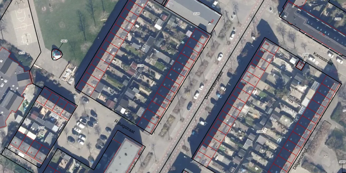 Het perceel waarop Overlanderstraat 249 staat heeft een oppervlakte van 3491 m². Dit is een zeer groot perceel. De perceeloppervlakte wordt geregistreerd door het Kadaster. Gedetailleerde informatie over de maten van dit perceel kunt u vinden in het rapport Kadastrale kaart met maatvoering van Overlanderstraat 249.