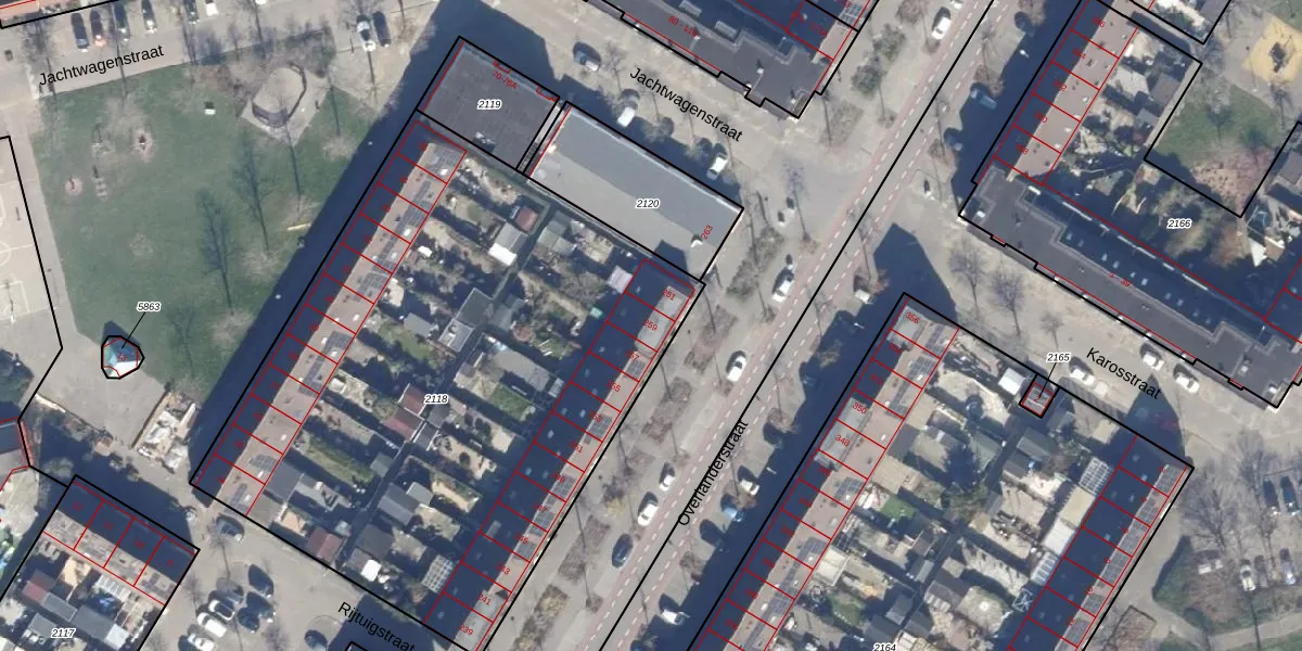 Het perceel waarop Overlanderstraat 259 staat heeft een oppervlakte van 3491 m². Dit is een zeer groot perceel. De perceeloppervlakte wordt geregistreerd door het Kadaster. Gedetailleerde informatie over de maten van dit perceel kunt u vinden in het rapport Kadastrale kaart met maatvoering van Overlanderstraat 259.