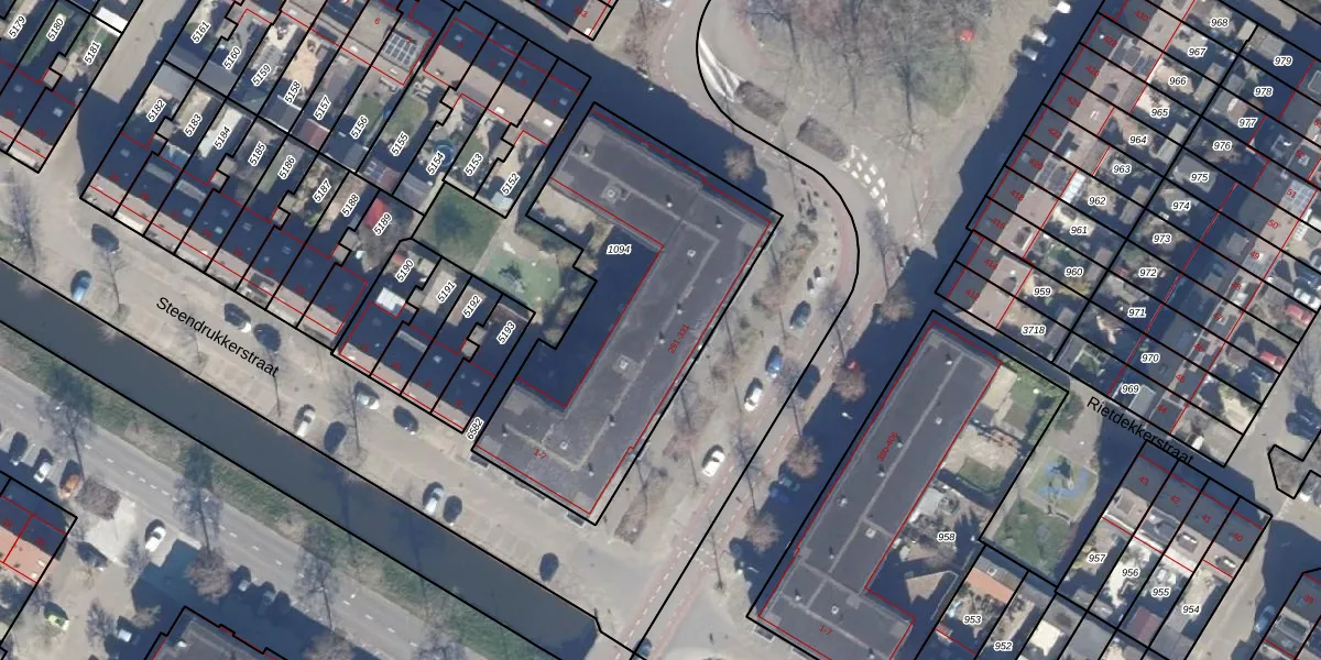 Het perceel waarop Overlanderstraat 297 staat heeft een oppervlakte van 1397 m². Dit is een zeer groot perceel. De perceeloppervlakte wordt geregistreerd door het Kadaster. Gedetailleerde informatie over de maten van dit perceel kunt u vinden in het rapport Kadastrale kaart met maatvoering van Overlanderstraat 297.