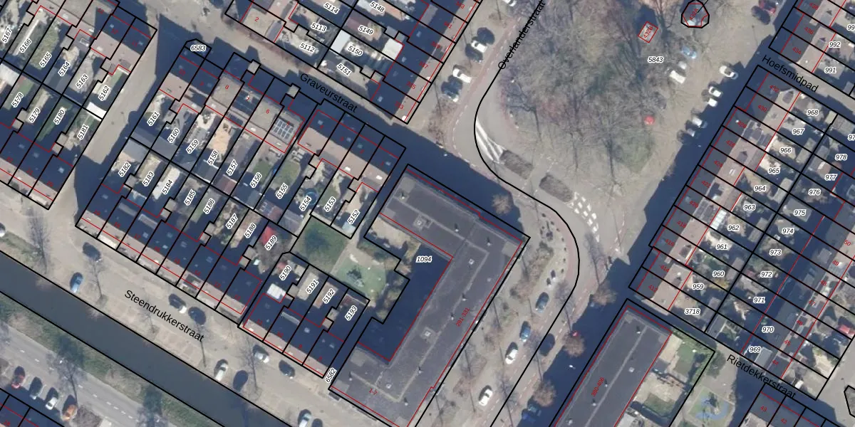 Het perceel waarop Overlanderstraat 323 staat heeft een oppervlakte van 1397 m². Dit is een zeer groot perceel. De perceeloppervlakte wordt geregistreerd door het Kadaster. Gedetailleerde informatie over de maten van dit perceel kunt u vinden in het rapport Kadastrale kaart met maatvoering van Overlanderstraat 323.