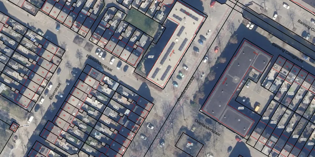 Overlanderstraat 375 is gelegen op kadastraal perceel PMR00A1087. Deze kadastrale aanduiding is uniek en wordt gebruikt door het Kadaster om eigendomsrechten en andere zakelijke rechten vast te leggen. Het perceel maakt onderdeel uit van de kadastrale gemeente Purmerend.