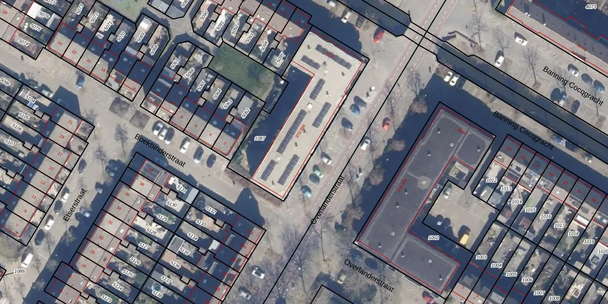 Overlanderstraat 385 is gelegen op kadastraal perceel PMR00A1087. Deze kadastrale aanduiding is uniek en wordt gebruikt door het Kadaster om eigendomsrechten en andere zakelijke rechten vast te leggen. Het perceel maakt onderdeel uit van de kadastrale gemeente Purmerend.