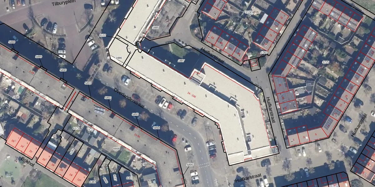Het perceel waarop Overlanderstraat 76 staat heeft een oppervlakte van 2409 m². Dit is een zeer groot perceel. De perceeloppervlakte wordt geregistreerd door het Kadaster. Gedetailleerde informatie over de maten van dit perceel kunt u vinden in het rapport Kadastrale kaart met maatvoering van Overlanderstraat 76.
