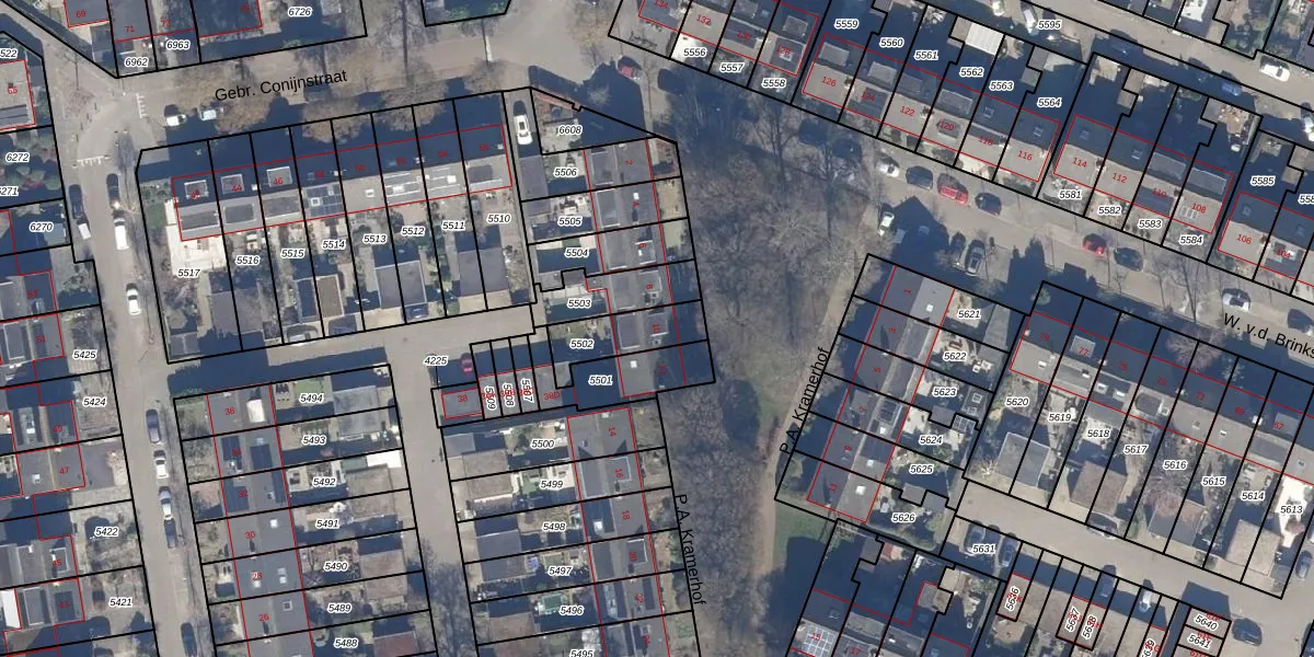 Gebruik de zoekbalk of klik op een perceel voor informatie over de adressen binnen dit perceel.