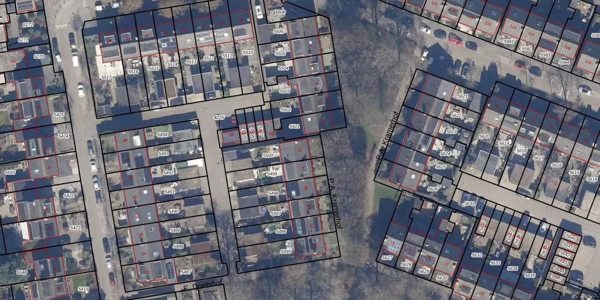 P.A. Kramerhof 14 is gelegen op kadastraal perceel PMR00D5500. Deze kadastrale aanduiding is uniek en wordt gebruikt door het Kadaster om eigendomsrechten en andere zakelijke rechten vast te leggen. Het perceel maakt onderdeel uit van de kadastrale gemeente Purmerend.