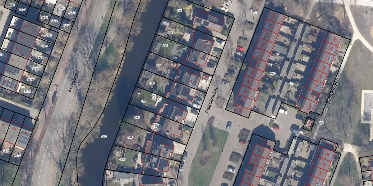Het perceel waarop Paltrokmolen 39 staat heeft een oppervlakte van 370 m². Dit is een groot perceel. De perceeloppervlakte wordt geregistreerd door het Kadaster. Gedetailleerde informatie over de maten van dit perceel kunt u vinden in het rapport Kadastrale kaart met maatvoering van Paltrokmolen 39.