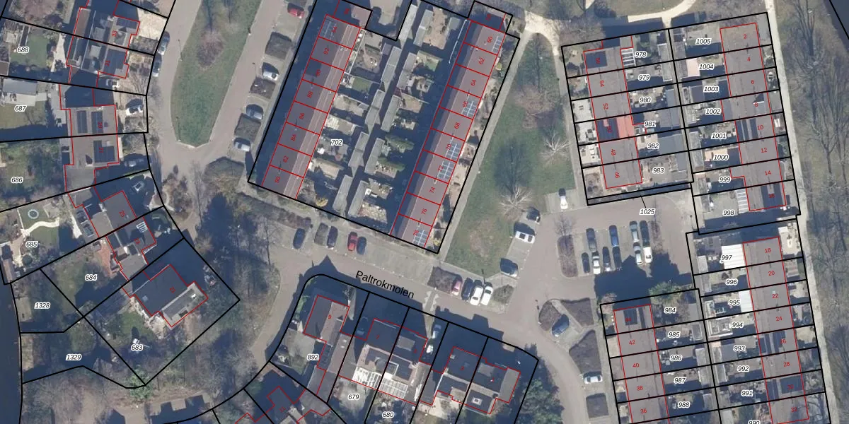 Het perceel waarop Paltrokmolen 76 staat heeft een oppervlakte van 2480 m². Dit is een zeer groot perceel. De perceeloppervlakte wordt geregistreerd door het Kadaster. Gedetailleerde informatie over de maten van dit perceel kunt u vinden in het rapport Kadastrale kaart met maatvoering van Paltrokmolen 76.