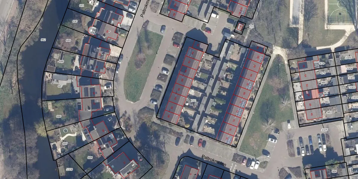 Het perceel waarop Paltrokmolen 86 staat heeft een oppervlakte van 2480 m². Dit is een zeer groot perceel. De perceeloppervlakte wordt geregistreerd door het Kadaster. Gedetailleerde informatie over de maten van dit perceel kunt u vinden in het rapport Kadastrale kaart met maatvoering van Paltrokmolen 86.