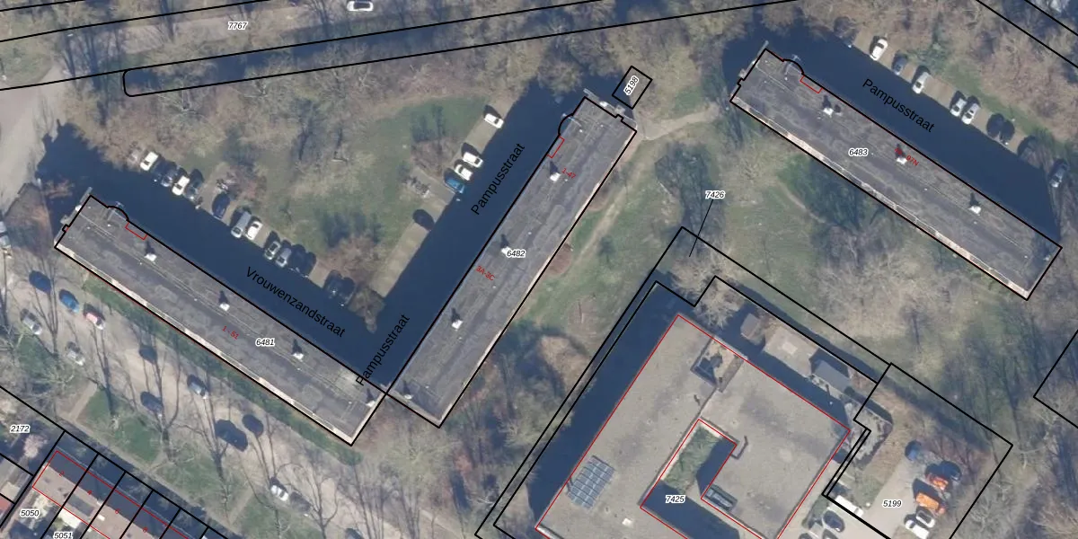 Het perceel waarop Pampusstraat 29 staat heeft een oppervlakte van 777 m². Dit is een groot perceel. De perceeloppervlakte wordt geregistreerd door het Kadaster. Gedetailleerde informatie over de maten van dit perceel kunt u vinden in het rapport Kadastrale kaart met maatvoering van Pampusstraat 29.