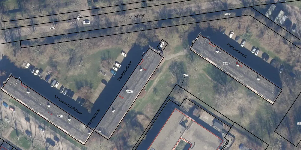 Het perceel waarop Pampusstraat 43 staat heeft een oppervlakte van 777 m². Dit is een groot perceel. De perceeloppervlakte wordt geregistreerd door het Kadaster. Gedetailleerde informatie over de maten van dit perceel kunt u vinden in het rapport Kadastrale kaart met maatvoering van Pampusstraat 43.