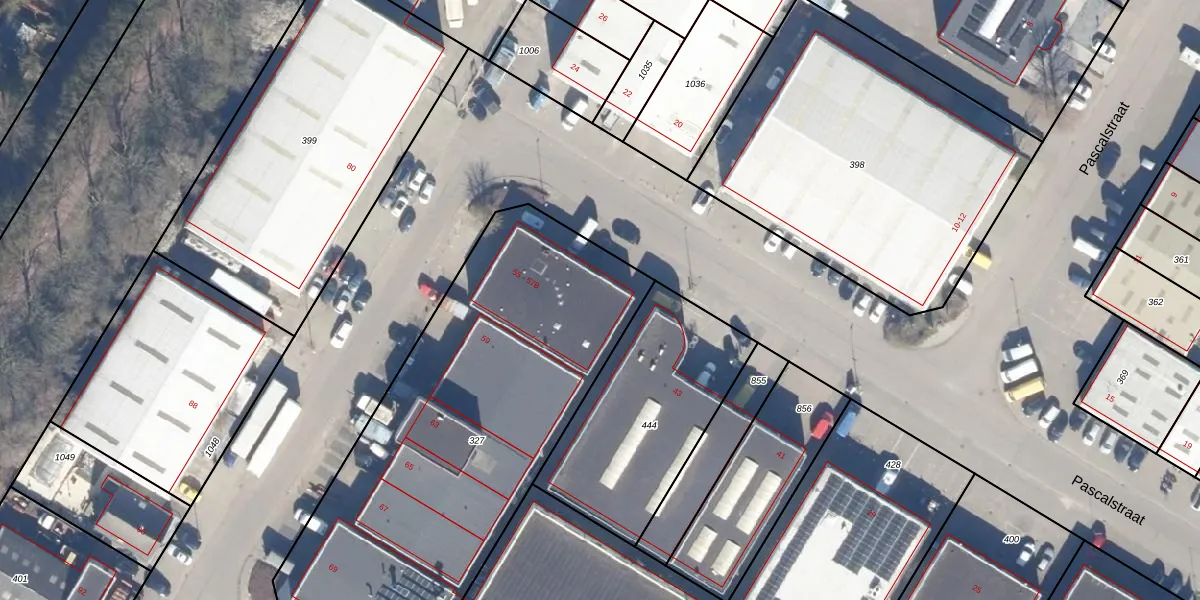 Het perceel waarop Pascalstraat 55 staat heeft een oppervlakte van 2274 m². Dit is een zeer groot perceel. De perceeloppervlakte wordt geregistreerd door het Kadaster. Gedetailleerde informatie over de maten van dit perceel kunt u vinden in het rapport Kadastrale kaart met maatvoering van Pascalstraat 55.