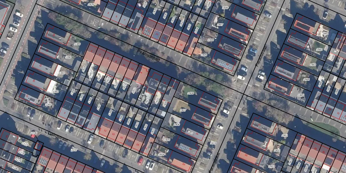 Gebruik de zoekbalk of klik op een perceel voor informatie over de adressen binnen dit perceel.