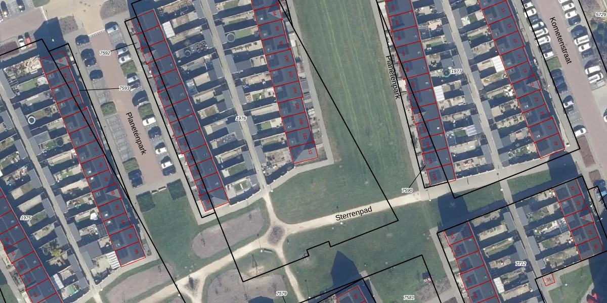 Het perceel waarop Planetenpark 112 staat heeft een oppervlakte van 4818 m². Dit is een zeer groot perceel. De perceeloppervlakte wordt geregistreerd door het Kadaster. Gedetailleerde informatie over de maten van dit perceel kunt u vinden in het rapport Kadastrale kaart met maatvoering van Planetenpark 112.