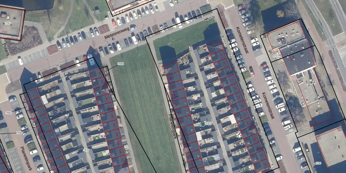 Het perceel waarop Planetenpark 91 staat heeft een oppervlakte van 4373 m². Dit is een zeer groot perceel. De perceeloppervlakte wordt geregistreerd door het Kadaster. Gedetailleerde informatie over de maten van dit perceel kunt u vinden in het rapport Kadastrale kaart met maatvoering van Planetenpark 91.