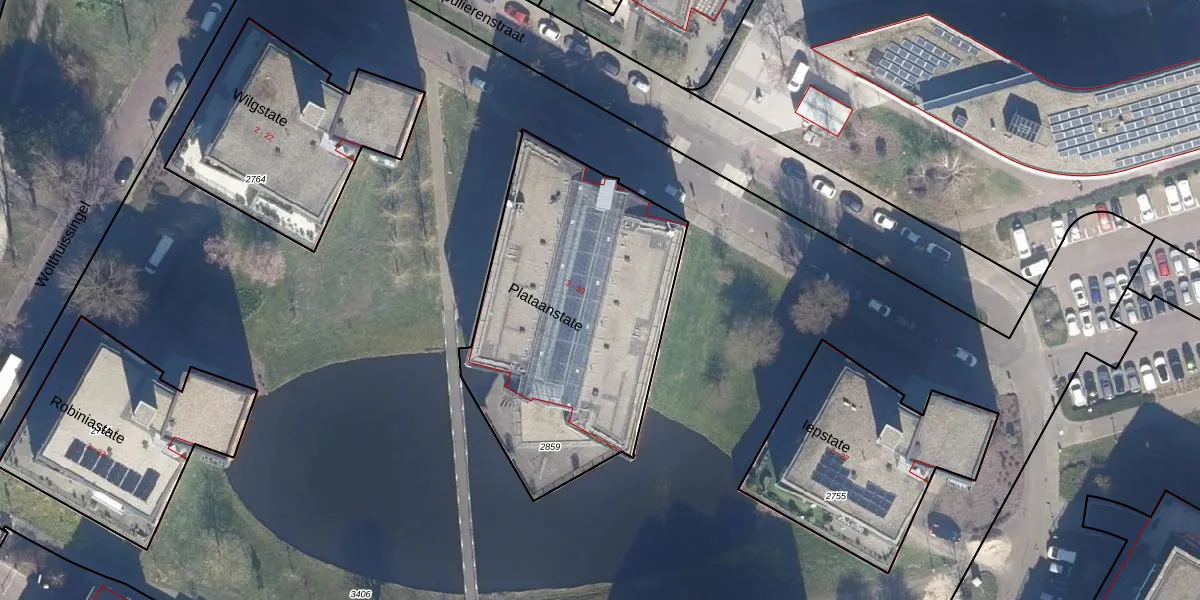 Het perceel waarop Plataanstate 27 staat heeft een oppervlakte van 1466 m². Dit is een zeer groot perceel. De perceeloppervlakte wordt geregistreerd door het Kadaster. Gedetailleerde informatie over de maten van dit perceel kunt u vinden in het rapport Kadastrale kaart met maatvoering van Plataanstate 27.