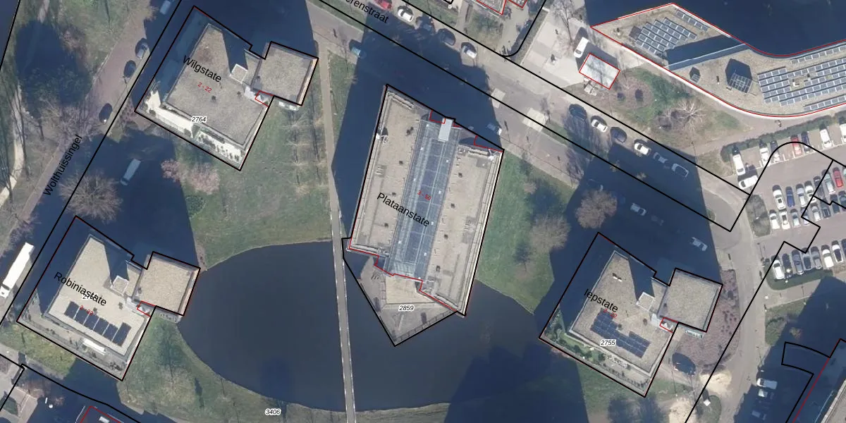 Het perceel waarop Plataanstate 33 staat heeft een oppervlakte van 1466 m². Dit is een zeer groot perceel. De perceeloppervlakte wordt geregistreerd door het Kadaster. Gedetailleerde informatie over de maten van dit perceel kunt u vinden in het rapport Kadastrale kaart met maatvoering van Plataanstate 33.
