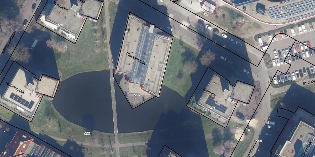 Het perceel waarop Plataanstate 50 staat heeft een oppervlakte van 1466 m². Dit is een zeer groot perceel. De perceeloppervlakte wordt geregistreerd door het Kadaster. Gedetailleerde informatie over de maten van dit perceel kunt u vinden in het rapport Kadastrale kaart met maatvoering van Plataanstate 50.