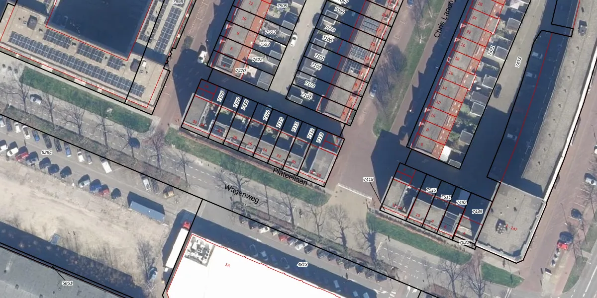 Het perceel waarop Plateellaan 20 staat heeft een oppervlakte van 95 m². Dit is een klein perceel. De perceeloppervlakte wordt geregistreerd door het Kadaster. Gedetailleerde informatie over de maten van dit perceel kunt u vinden in het rapport Kadastrale kaart met maatvoering van Plateellaan 20.