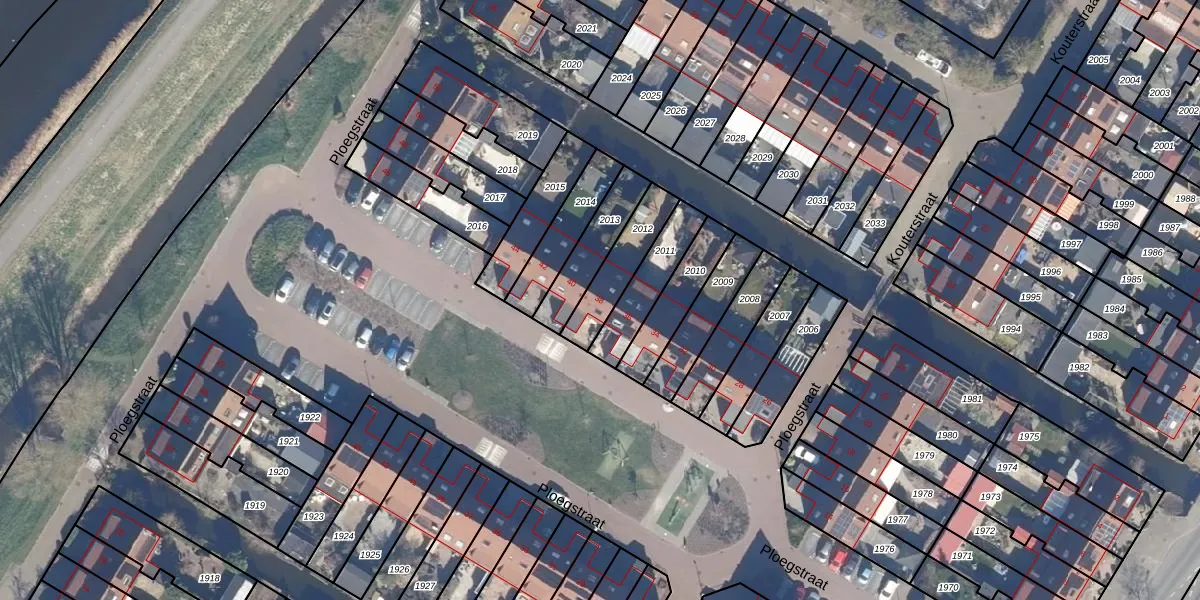 Het perceel waarop Ploegstraat 38 staat heeft een oppervlakte van 162 m². Dit is een middelgroot perceel. De perceeloppervlakte wordt geregistreerd door het Kadaster. Gedetailleerde informatie over de maten van dit perceel kunt u vinden in het rapport Kadastrale kaart met maatvoering van Ploegstraat 38.