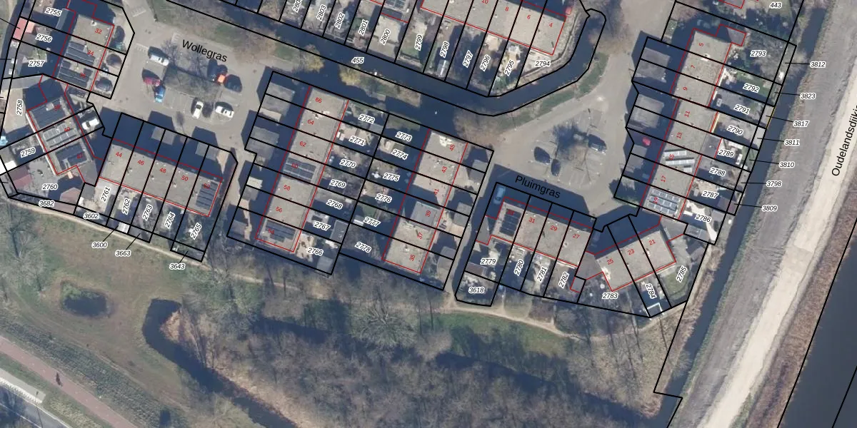 Gebruik de zoekbalk of klik op een perceel voor informatie over de adressen binnen dit perceel.