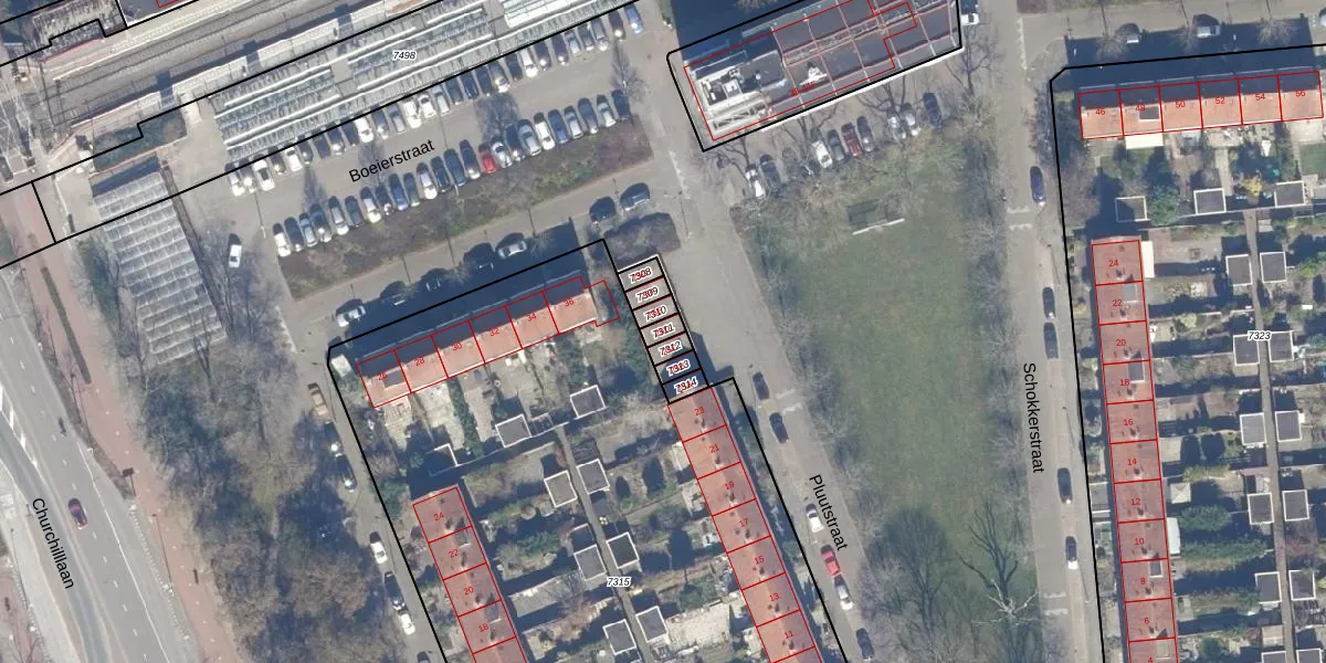 Gebruik de zoekbalk of klik op een perceel voor informatie over de adressen binnen dit perceel.