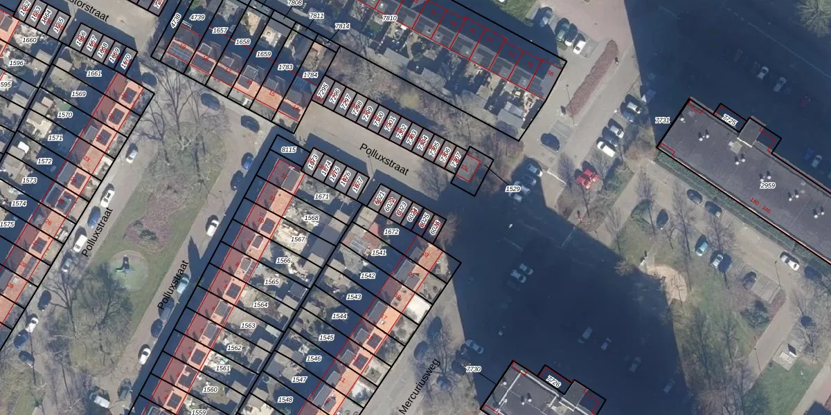 Gebruik de zoekbalk of klik op een perceel voor informatie over de adressen binnen dit perceel.