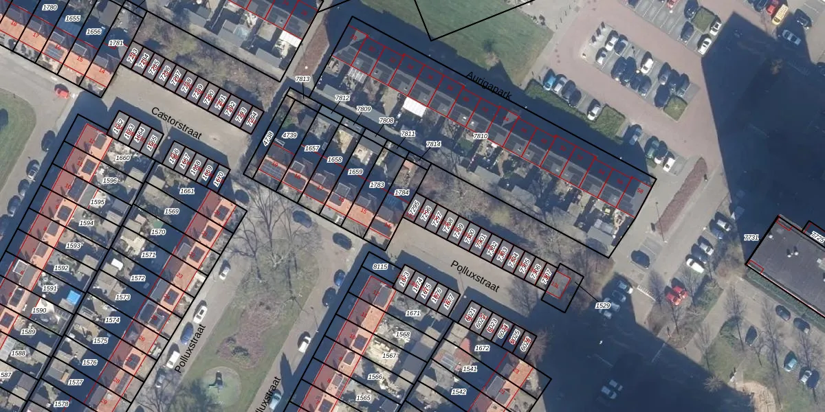 Gebruik de zoekbalk of klik op een perceel voor informatie over de adressen binnen dit perceel.