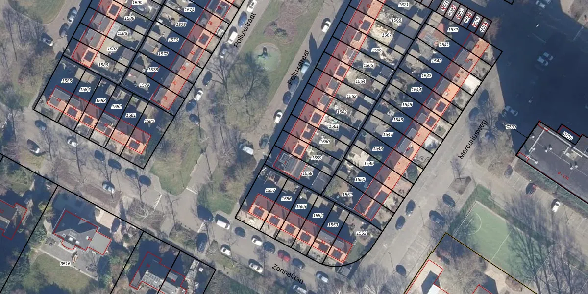 Gebruik de zoekbalk of klik op een perceel voor informatie over de adressen binnen dit perceel.