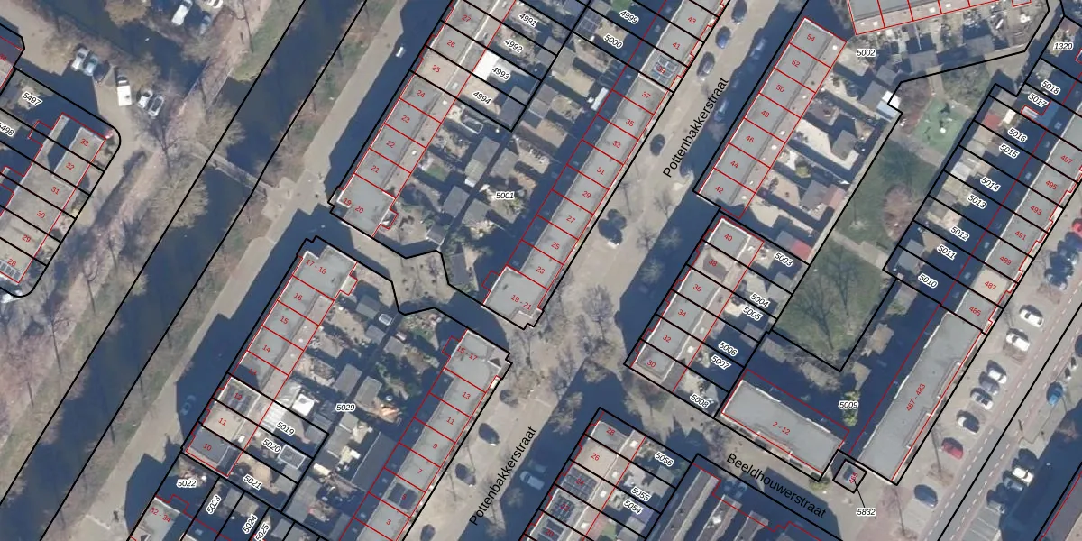 Het perceel waarop Pottenbakkerstraat 23 staat heeft een oppervlakte van 1781 m². Dit is een zeer groot perceel. De perceeloppervlakte wordt geregistreerd door het Kadaster. Gedetailleerde informatie over de maten van dit perceel kunt u vinden in het rapport Kadastrale kaart met maatvoering van Pottenbakkerstraat 23.