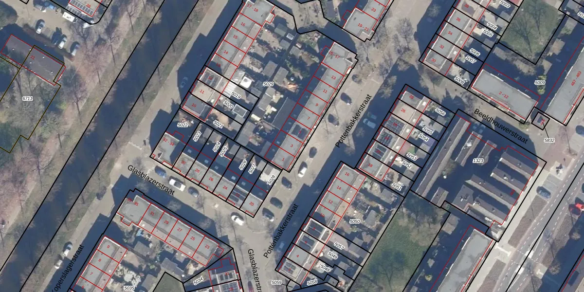Het perceel waarop Pottenbakkerstraat 3 staat heeft een oppervlakte van 1674 m². Dit is een zeer groot perceel. De perceeloppervlakte wordt geregistreerd door het Kadaster. Gedetailleerde informatie over de maten van dit perceel kunt u vinden in het rapport Kadastrale kaart met maatvoering van Pottenbakkerstraat 3.
