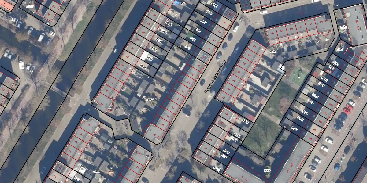 Het perceel waarop Pottenbakkerstraat 31 staat heeft een oppervlakte van 1781 m². Dit is een zeer groot perceel. De perceeloppervlakte wordt geregistreerd door het Kadaster. Gedetailleerde informatie over de maten van dit perceel kunt u vinden in het rapport Kadastrale kaart met maatvoering van Pottenbakkerstraat 31.