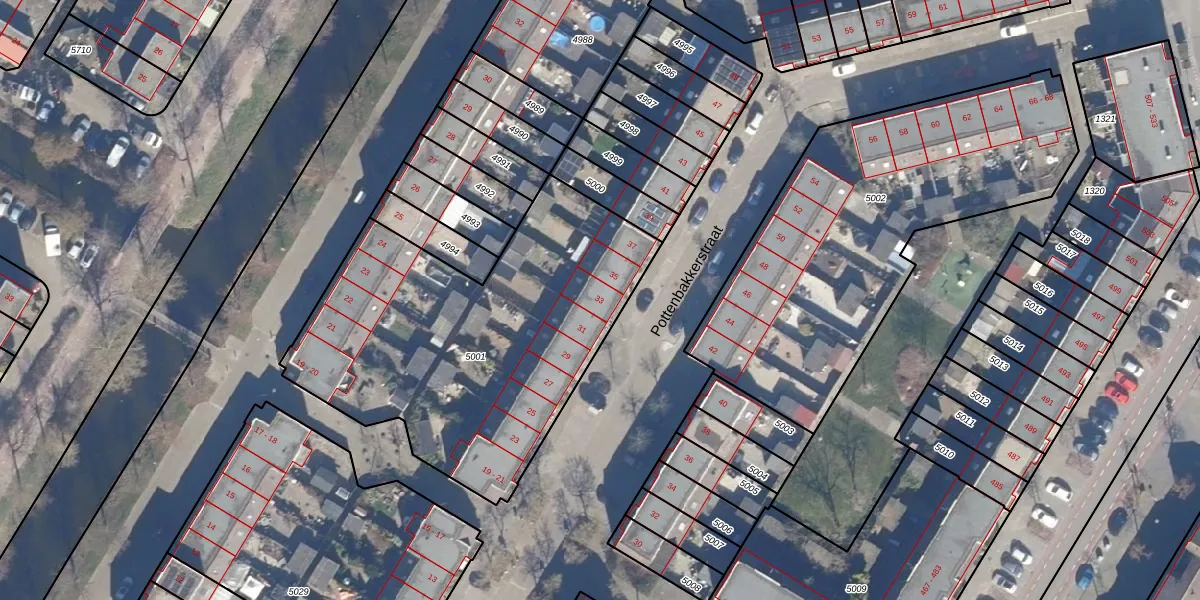 Het perceel waarop Pottenbakkerstraat 33 staat heeft een oppervlakte van 1781 m². Dit is een zeer groot perceel. De perceeloppervlakte wordt geregistreerd door het Kadaster. Gedetailleerde informatie over de maten van dit perceel kunt u vinden in het rapport Kadastrale kaart met maatvoering van Pottenbakkerstraat 33.