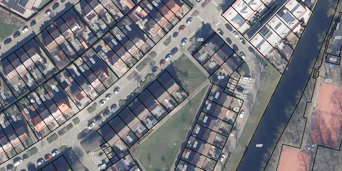 Gebruik de zoekbalk of klik op een perceel voor informatie over de adressen binnen dit perceel.