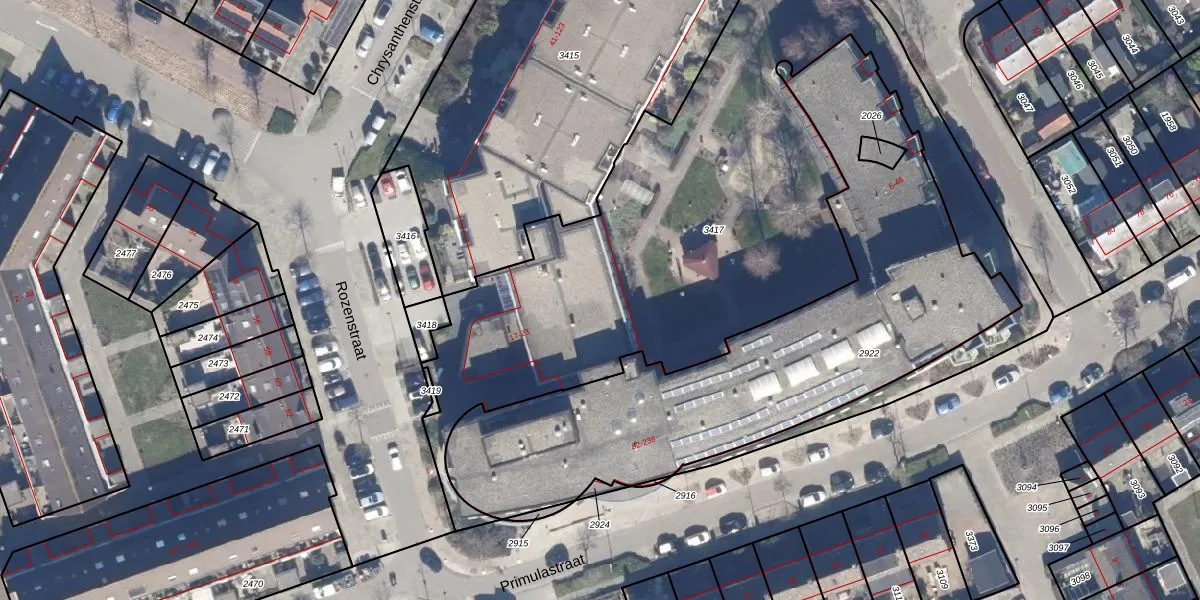 Het perceel waarop Primulastraat 106 staat heeft een oppervlakte van 3185 m². Dit is een zeer groot perceel. De perceeloppervlakte wordt geregistreerd door het Kadaster. Gedetailleerde informatie over de maten van dit perceel kunt u vinden in het rapport Kadastrale kaart met maatvoering van Primulastraat 106.