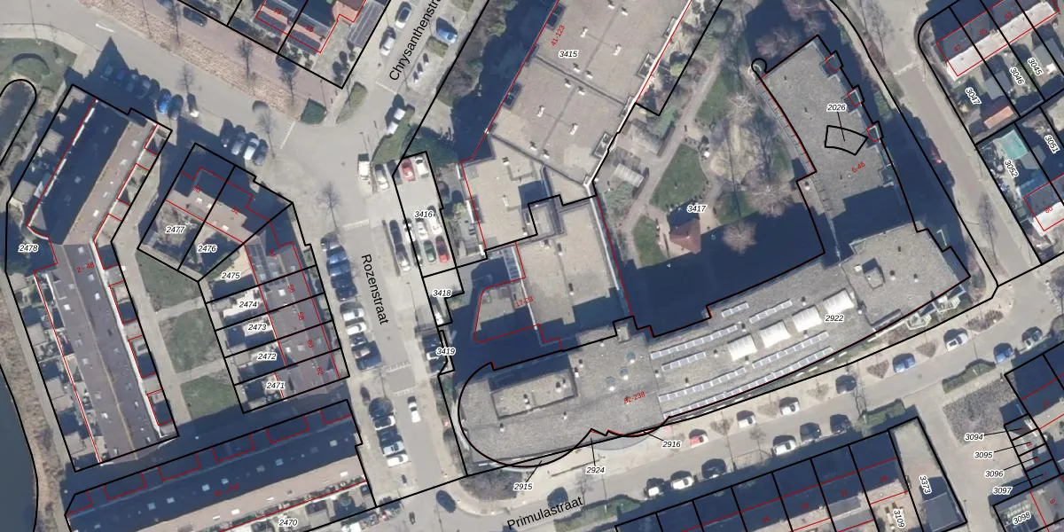 Het perceel waarop Primulastraat 108 staat heeft een oppervlakte van 3185 m². Dit is een zeer groot perceel. De perceeloppervlakte wordt geregistreerd door het Kadaster. Gedetailleerde informatie over de maten van dit perceel kunt u vinden in het rapport Kadastrale kaart met maatvoering van Primulastraat 108.
