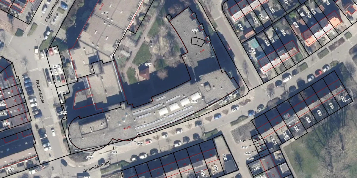 Het perceel waarop Primulastraat 216 staat heeft een oppervlakte van 2210 m². Dit is een zeer groot perceel. De perceeloppervlakte wordt geregistreerd door het Kadaster. Gedetailleerde informatie over de maten van dit perceel kunt u vinden in het rapport Kadastrale kaart met maatvoering van Primulastraat 216.